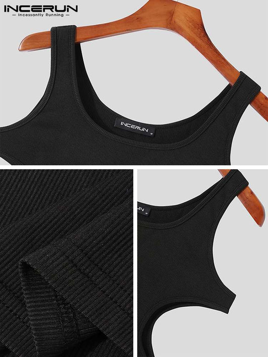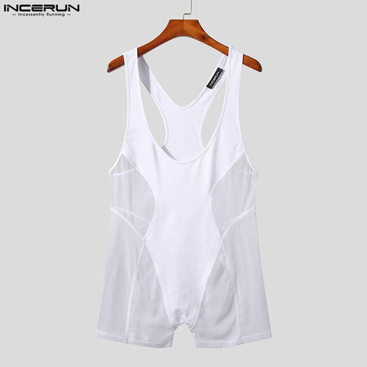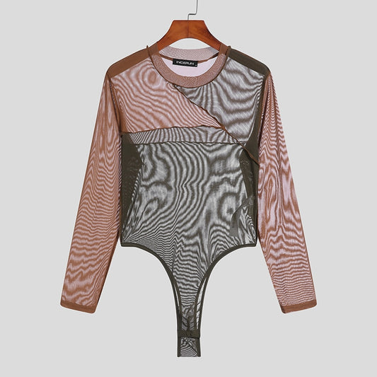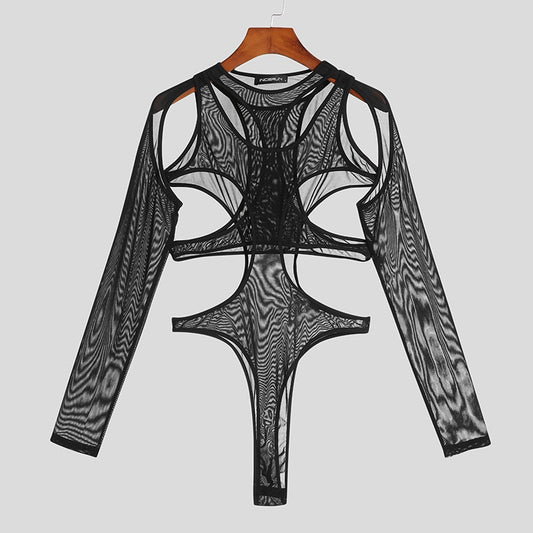 Hollow Out Solid Men Bodysuits